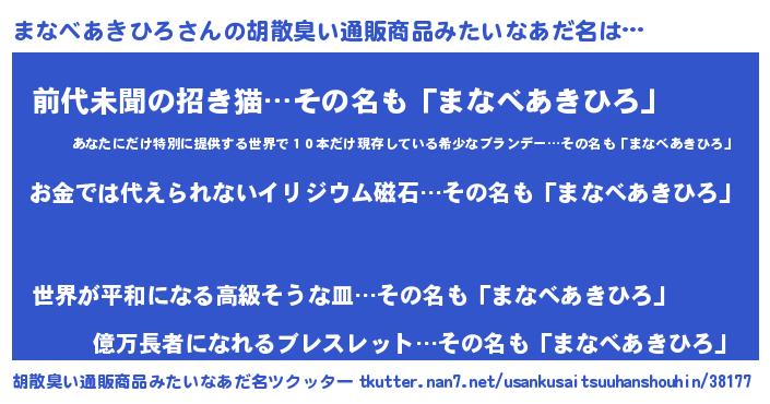 | ヒーロー風カッコイイあだ名 | 『友情の使者まなべあきひろ』 |