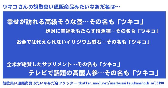 | ヘコむあだ名 | 『なまこ酢』『ツキコ(遠い目)』 |