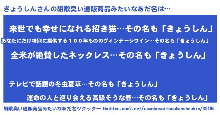 | ヘコむあだ名 | 『きょ太郎』『きょうしん(苦笑)』 |