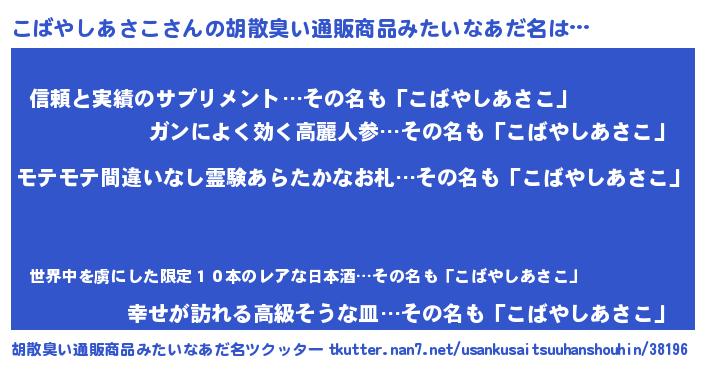 | 肩書あだ名 | 『こばやしあさこ御曹司』 |