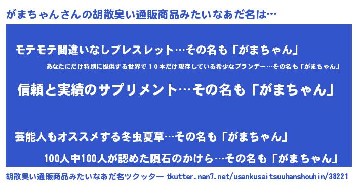 | 意味不明あだ名 | 『とにかく怪しいがまちゃん』 |