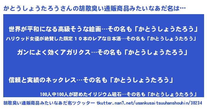 | 意味不明あだ名 | 『自称かとうしょうたろう』 |