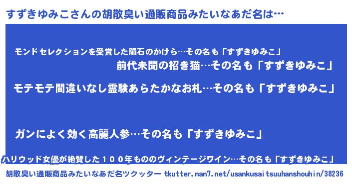 | ヘコむあだ名 | 『すずっふぃ~』『すずきゆみこ(遠い目)』 |