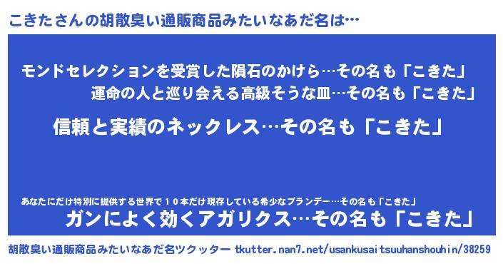 | 意味不明あだ名 | 『とにかく怪しいこきた』『自称こきた』 |