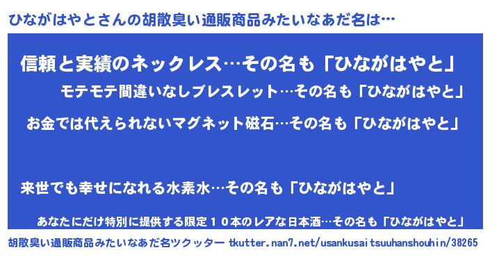 | 肩書あだ名 | 『ひながはやと助教授』『ひながはやとCEO』 |