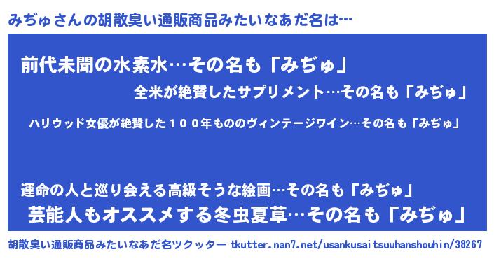 | 意味不明あだ名 | 『住所不定無職みぢゅ(6歳)』『自称みぢゅ』 |