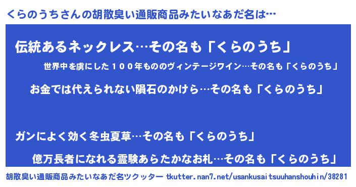 くらのうちさんの胡散臭い通販商品みたいなあだ名をツクッター!