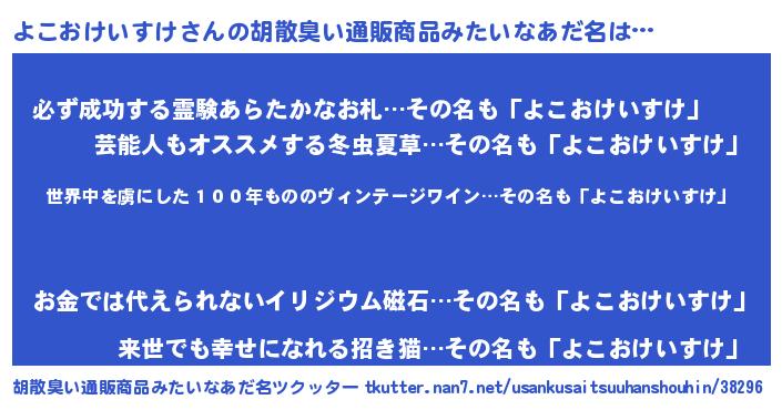 よこおけいすけさんの胡散臭い通販商品みたいなあだ名をツクッター!
