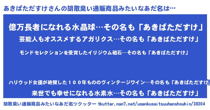 あきばただすけさんの胡散臭い通販商品みたいなあだ名をツクッター!