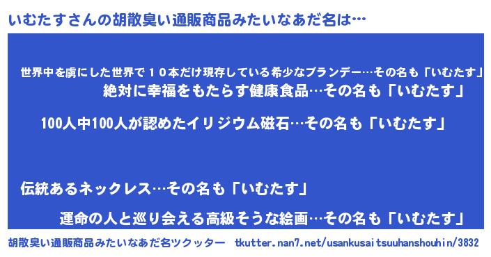 | ヘコむあだ名 | 『牛乳』『いむたす(笑)』『いむもー』 |