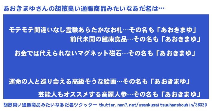 | 肩書あだ名 | 『あおきまゆ教授』『あおきまゆ御曹司』 |