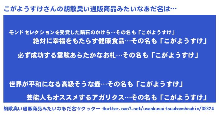 | ヒーロー風カッコイイあだ名 | 『スーパーコガヨウスケ』 |