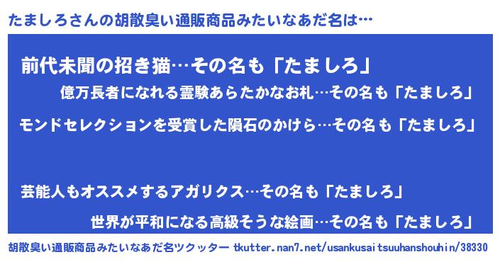 | ヘコむあだ名 | 『たましろ(苦笑)』『レバニラ』 |