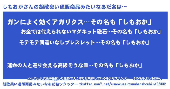 | ヘコむあだ名 | 『しもにー』『レバニラ』『しもお』 |