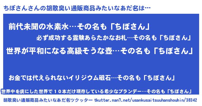 | 意味不明あだ名 | 『ちぼさんフォーエバー』 |