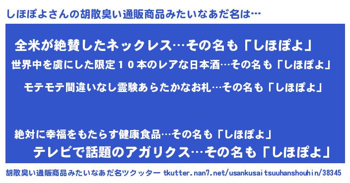 | 男性向けラノベタイトル風あだ名 | 『しほぽよに滅ぼされるだけの簡単なお仕事です』 |