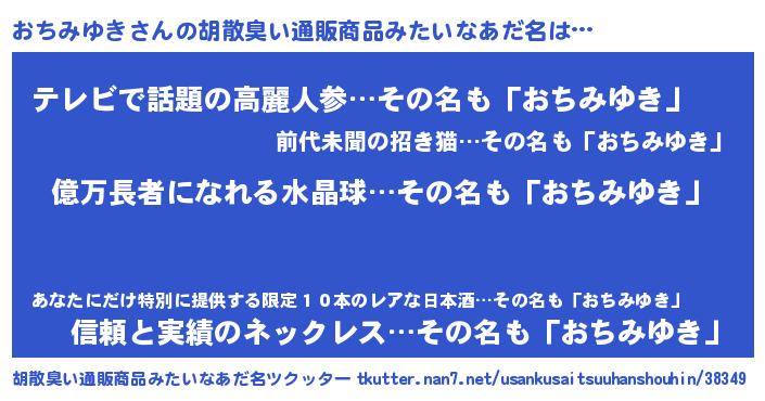 | 男性向けラノベタイトル風あだ名 | 『うちのおちみゆきが世界を掌握している!』 |