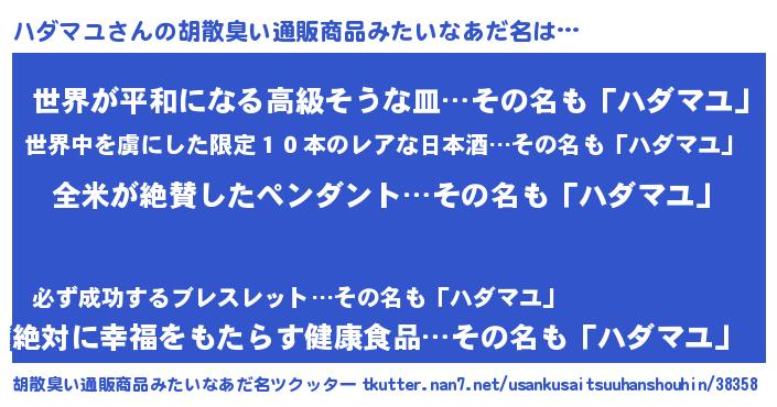 | ヒーロー風カッコイイあだ名 | 『幻影騎士ハダ』『ウルトラハダマユマン』 |