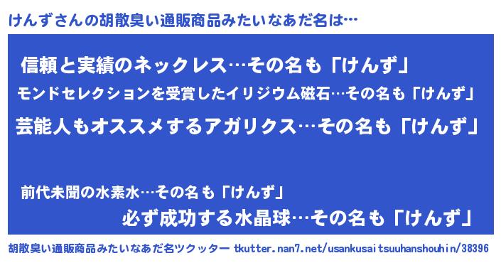| 意味不明あだ名 | 『自称けんず』『とにかく怪しいけんず』 |