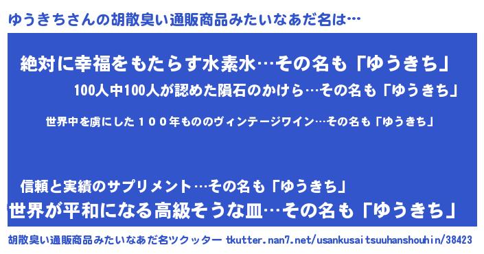 | 意味不明あだ名 | 『住所不定無職ゆうきち(4歳)』 |