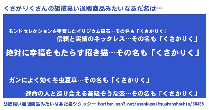 | ヒーロー風カッコイイあだ名 | 『ネオクサカリク』『幻影騎士クサ』 |