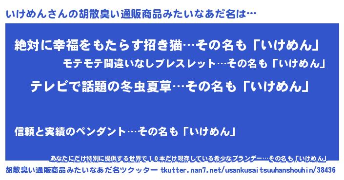 | 意味不明あだ名 | 『自称いけめん』『永久保存いけめん』 |