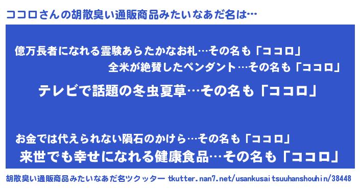 | ヘコむあだ名 | 『ココっふぃ~』『ココロ(遠い目)』 |