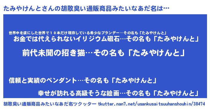 | 意味不明あだ名 | 『永久保存たみやけんと』 |