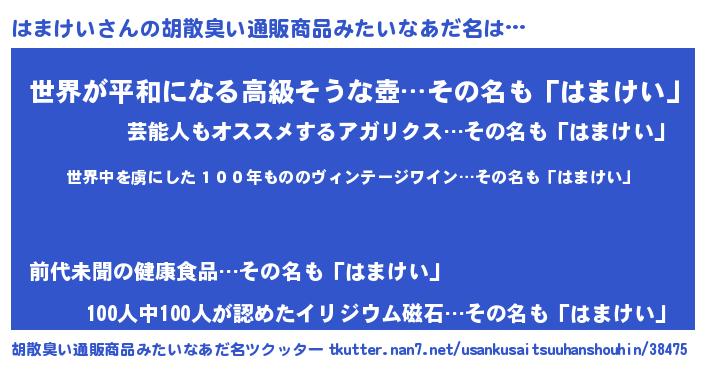 | ヒーロー風カッコイイあだ名 | 『仮面ハマダー』『ウルトラはまけいマン』 |