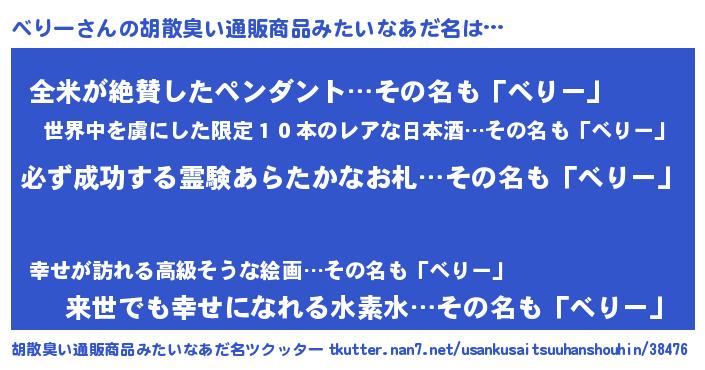 べりーさんの胡散臭い通販商品みたいなあだ名をツクッター!