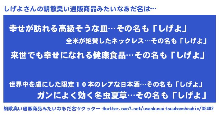 | ヘコむあだ名 | 『しげよ(笑)』『牛乳』『しげぷりん』 |