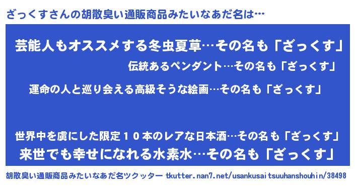 | 意味不明あだ名 | 『ニラ科ざっくす属』『自称ざっくす』 |
