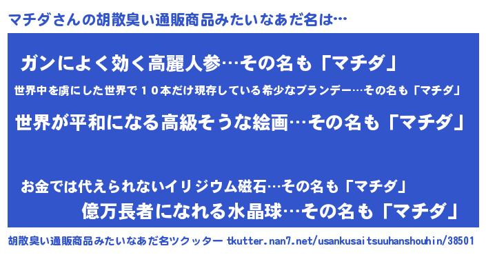 | ヘコむあだ名 | 『豆乳』『マチにゅー』『マチダ(爆)』 |