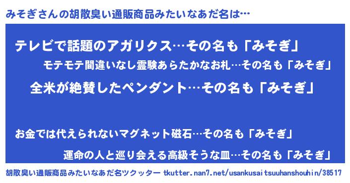| ヘコむあだ名 | 『みそぷりん』『豆乳』 |