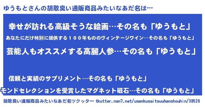 | 男性向けラノベタイトル風あだ名 | 『ゆうもとに滅ぼされるだけの簡単なお仕事です』 |
