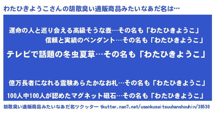 | 意味不明あだ名 | 『自称わたひきようこ』 |