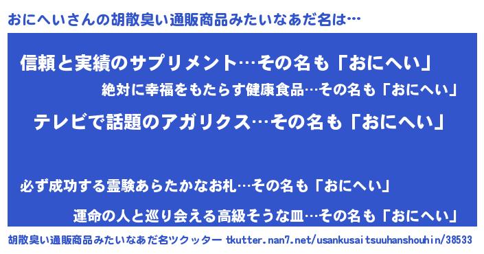 | ヒーロー風カッコイイあだ名 | 『サイバー戦士オニヘイ』『暗黒騎士オニ』 |