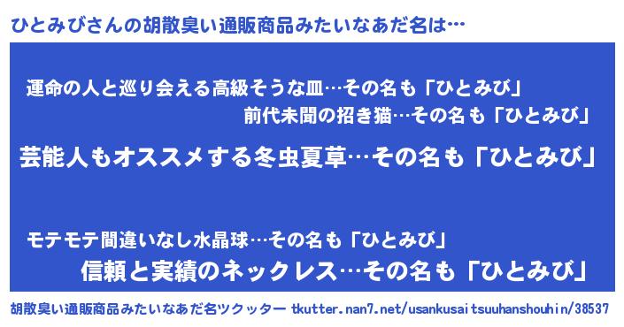 | 意味不明あだ名 | 『自称ひとみび』『ひとみびフォーエバー』 |