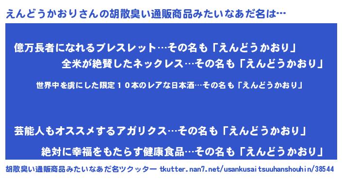 | ヘコむあだ名 | 『えんにゅー』『えんどうかおり(小並感)』 |