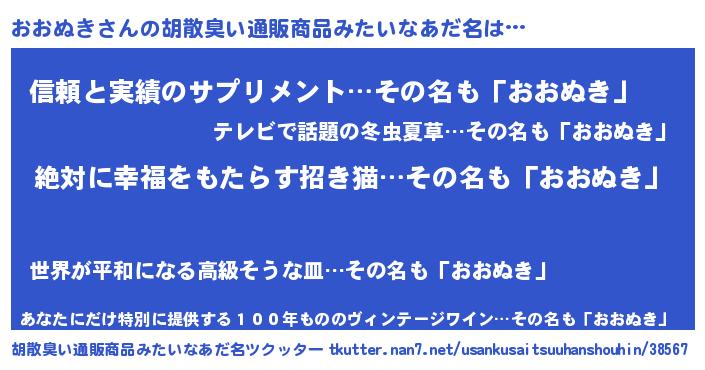 | 意味不明あだ名 | 『永久保存おおぬき』『自称おおぬき』 |