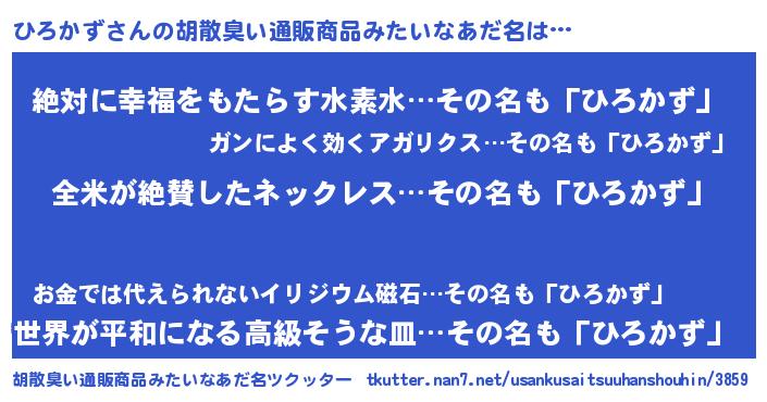 | 意味不明あだ名 | 『ヨモギ科ひろかず属』『自称ひろかず』 |
