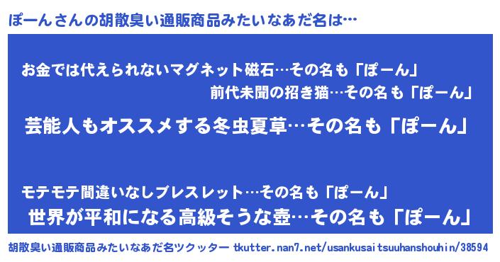 | 男性向けラノベタイトル風あだ名 | 『Re:ぽーんから始める異世界生活』 |