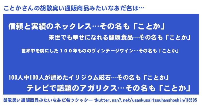 | 意味不明あだ名 | 『住所不定無職ことか(6歳)』『自称ことか』 |