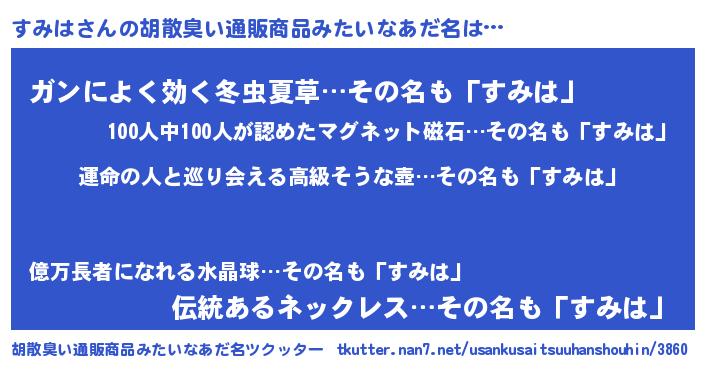 | ヘコむあだ名 | 『酢こんぶ』『すみっぺ』『すみもー』 |