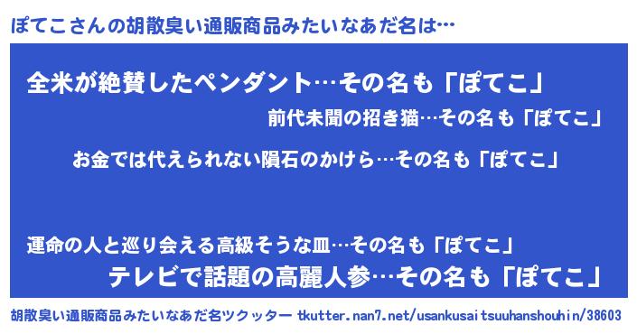 | 意味不明あだ名 | 『眠気覚ましガムぽてこ味』『自称ぽてこ』 |