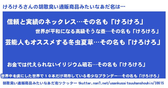 | 意味不明あだ名 | 『ニラ科けろけろ属』『自称けろけろ』 |