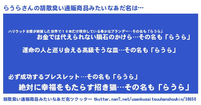 ヘコむあだ名 | 『レバニラ』『らうら(遠い目)』 |