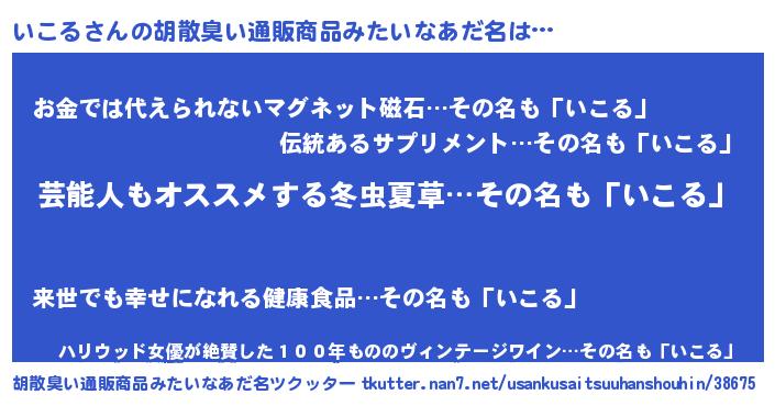 | 意味不明あだ名 | 『ニラ科いこる属』『自称いこる』 |