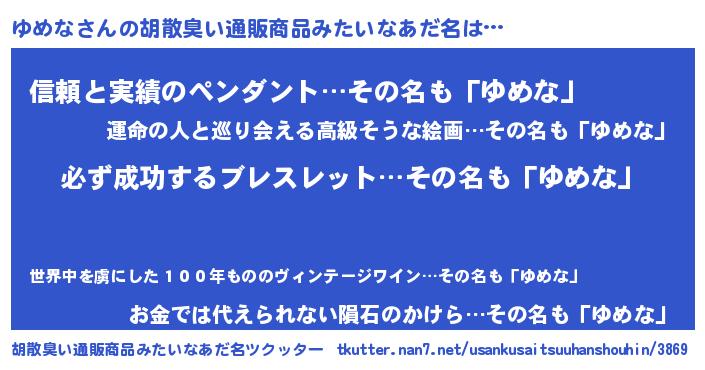 | ヘコむあだ名 | 『ゆめにー』『ゆめお』『レバニラ』 |
