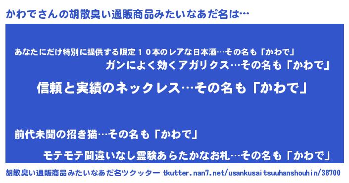 | 意味不明あだ名 | 『とにかく怪しいかわで』『自称かわで』 |